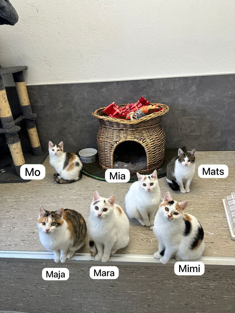Mimi, Mats, Mo und Maja kamen ursprünglich mit starkem Katzenschnupfen und Herpes zu uns. Sie wurden tierärztlich behandelt und liebevoll gesund gepflegt.